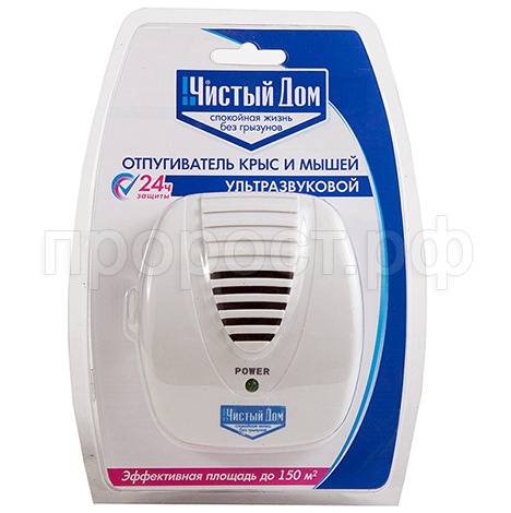 Отпугиватель крыс Чистый дом покрывает площадь до 150 кв.м. В первый месяц устройство лучше использовать непрерывно, в дальнейшем можно включать для профилактики на 4-5 дней. Не устанавливайте отпугиватель в местах повышенной влажности, где есть риск попадания дождя или снега.